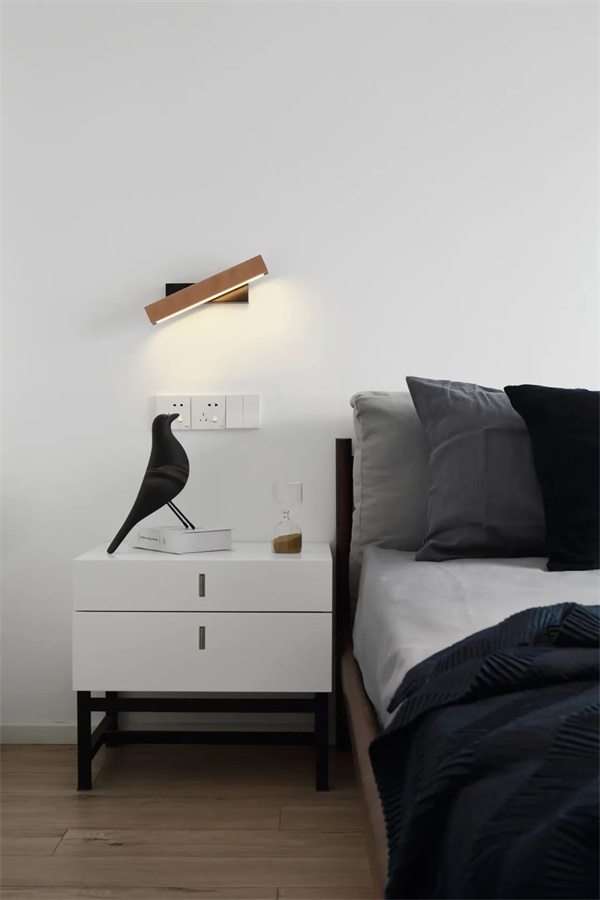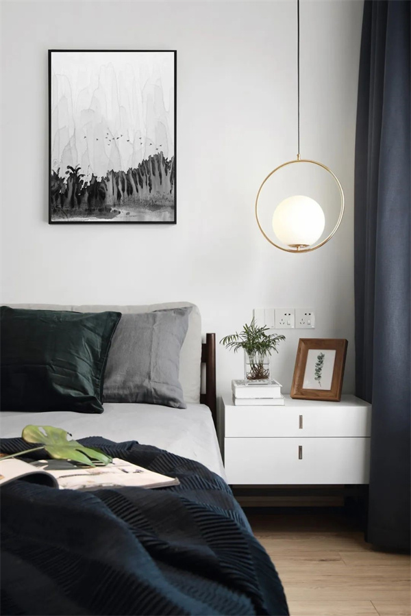 卧室的墙面选择明亮的白色,增加空间感和提升明亮度,地面采用原木色木质地板,为空间增添温暖和自然感。床头柜和衣柜采用简约的设计,整个卧室营造出一种宁静和清新的氛围,为居住者提供舒适和宁静的休息空间。