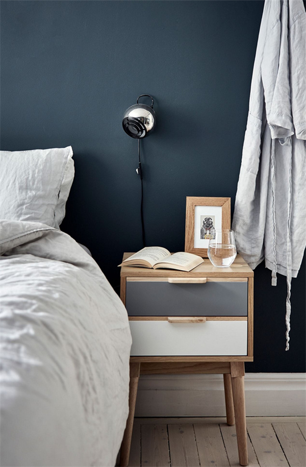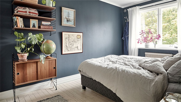 主卧打破传统的沉闷感,选择明亮的白色和淡雅的蓝色组合,搭配原木色的床头柜和家具,营造出轻松宁静的氛围。软装布置由清新的纯棉材质构成,窗帘选择透光的材质,每天清晨都能被温柔的阳光唤醒,开启美好的一天。